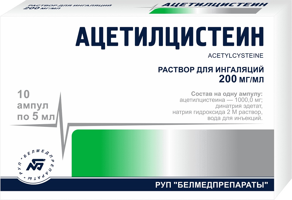Ацетилцистеин раствор для ингаляций 200мг/мл 5мл ампулы N10