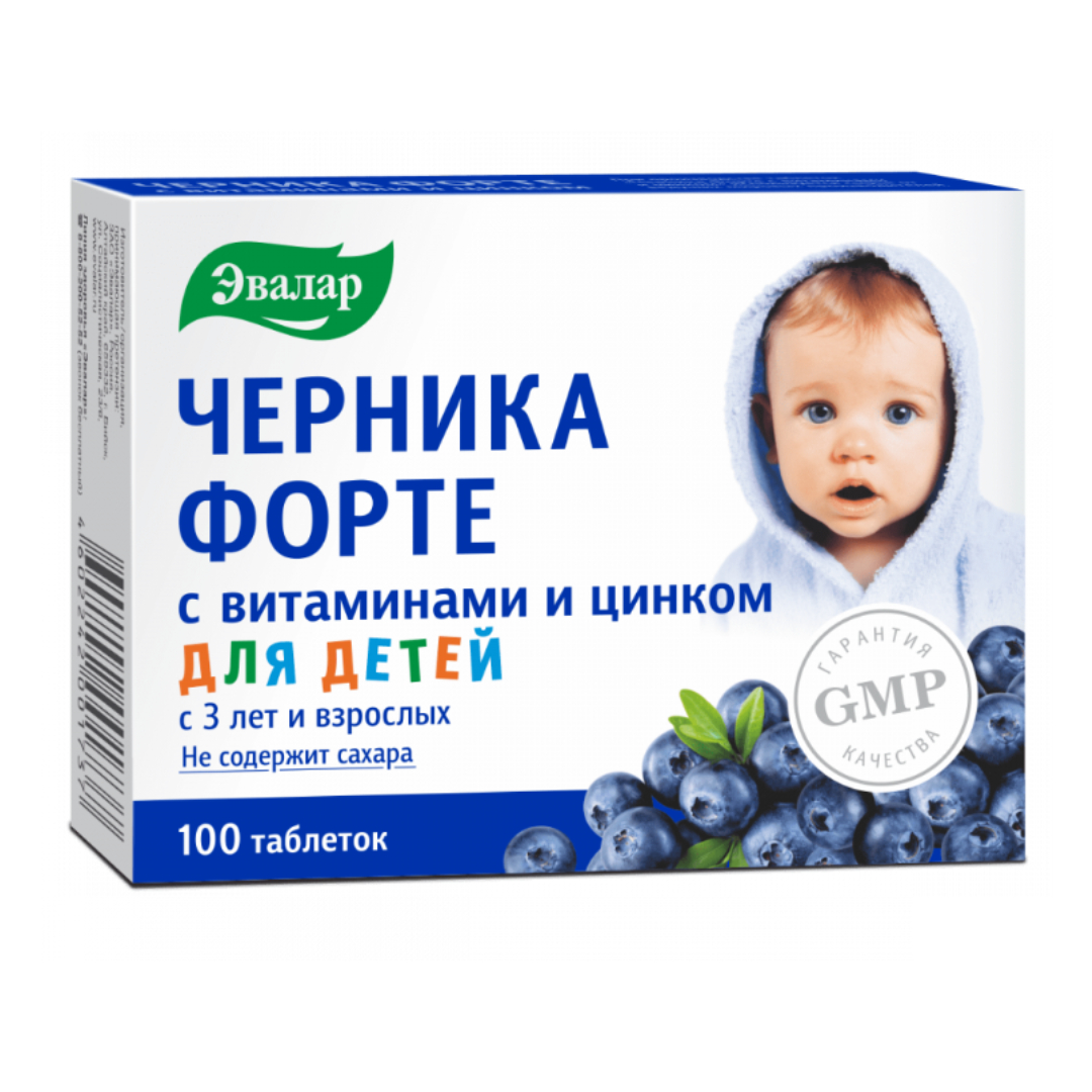 [name] => Черника Форте с витаминами и цинком таблетки 0,25 N100 Эвалар