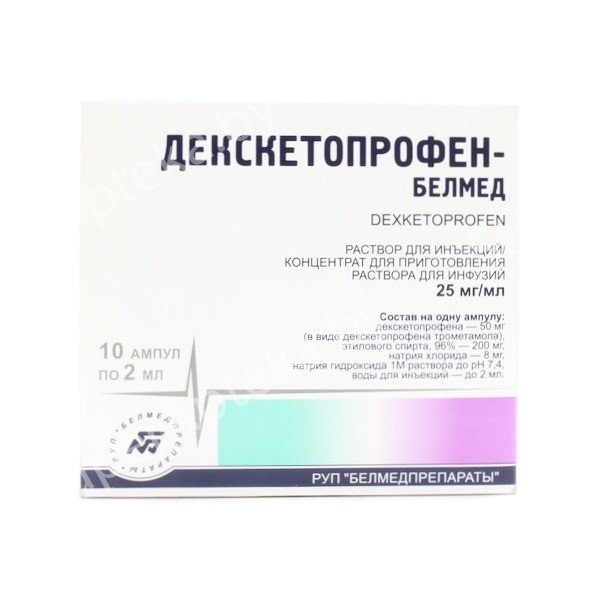 Декскетопрофен-Белмед раствор для инъекции для инфузии 25мг/мл 2мл N10