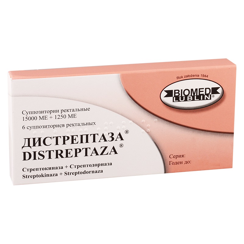 Дистрептаза суппозитории N6 15000МЕ+1250МЕ