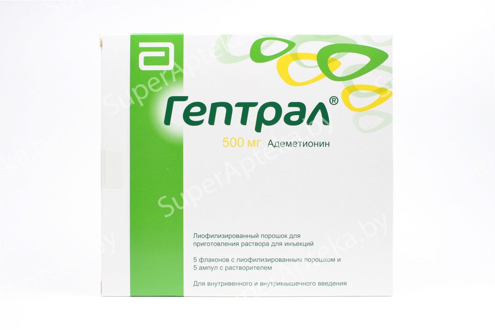 Гептрал порошок для приготовления раствора для инъекций 500мг+ растворитель ампулы 5мл N5