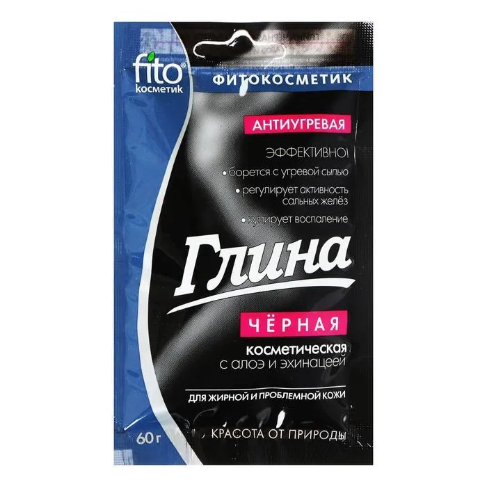 Глина черная антиугревая с алоэ и эхинацеей Fito Косметик 60 г