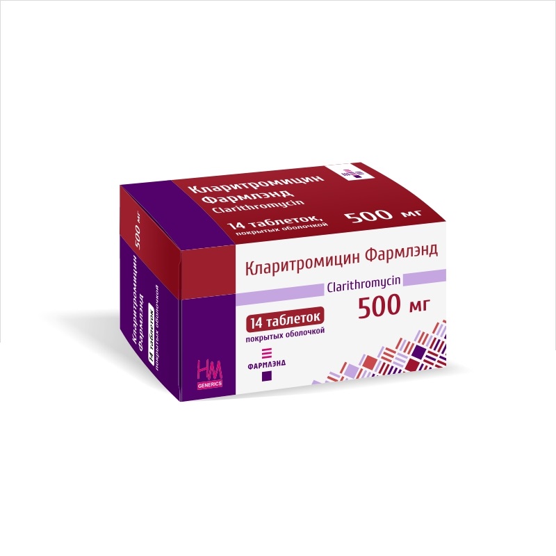 Кларитромицин Фармлэнд таблетки покрытые оболочкой 500мг N14