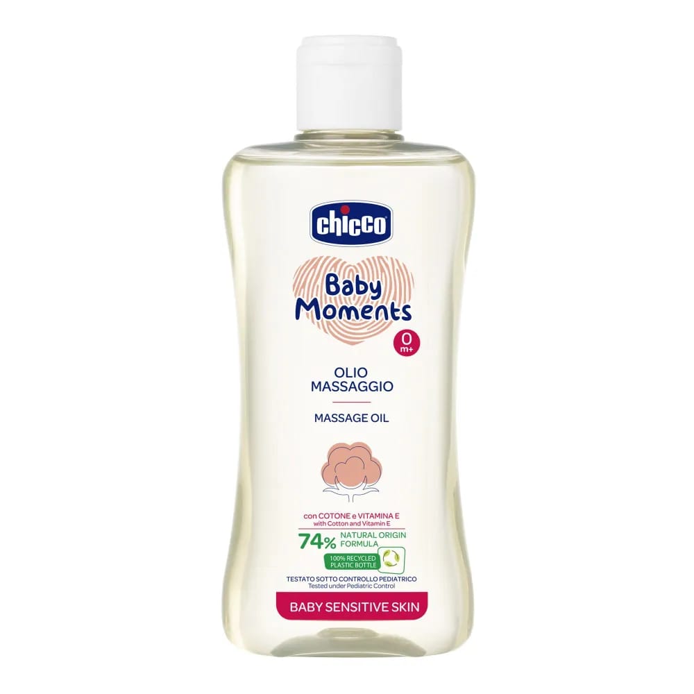 Масло массажное для чувствительной кожи с экстрактом хлопка и витамином Е 0 мес+ Chicco Baby Moments 200 мл