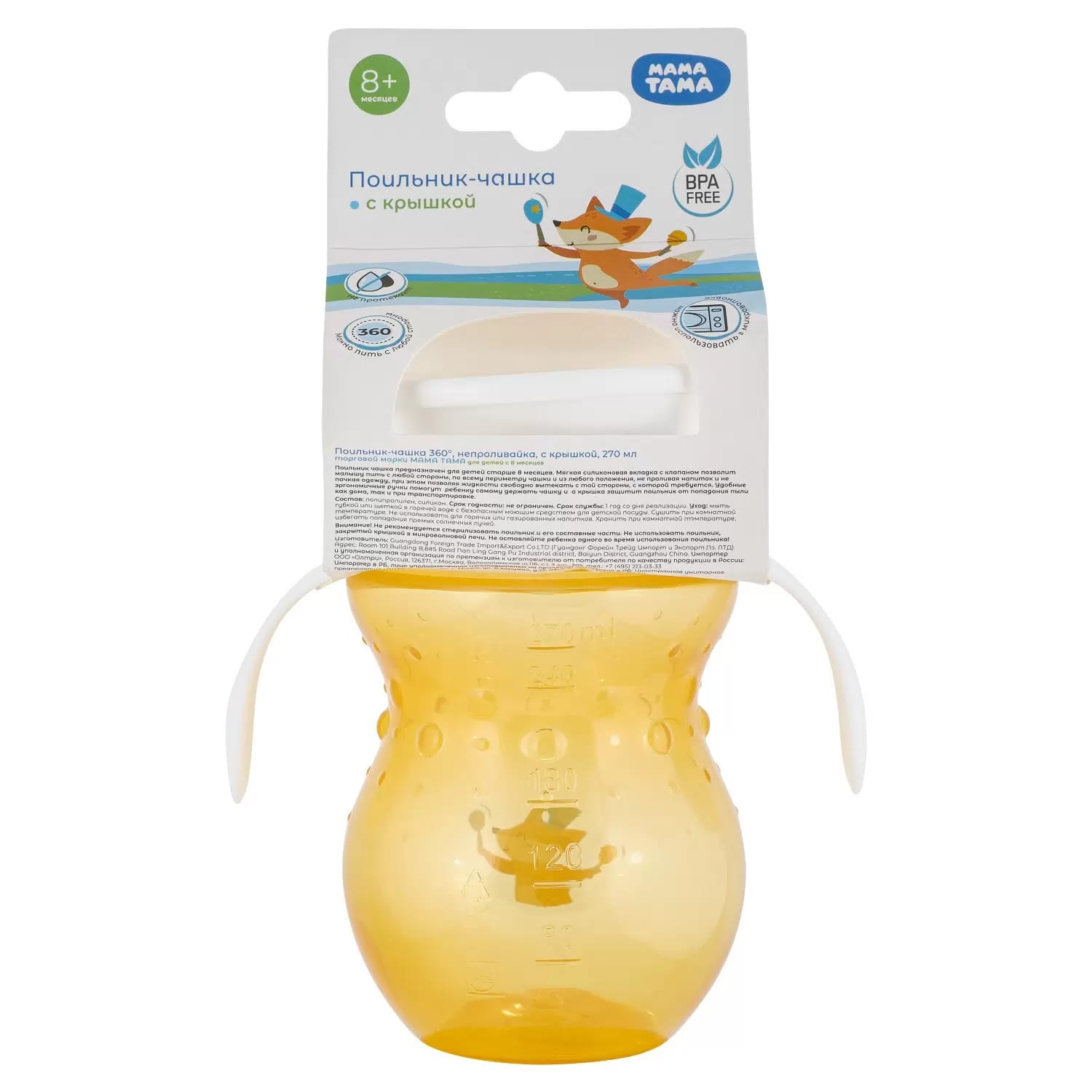 [name] => Поильник-чашка непроливайка 8мес+ оранжевый Мама тама 270 мл