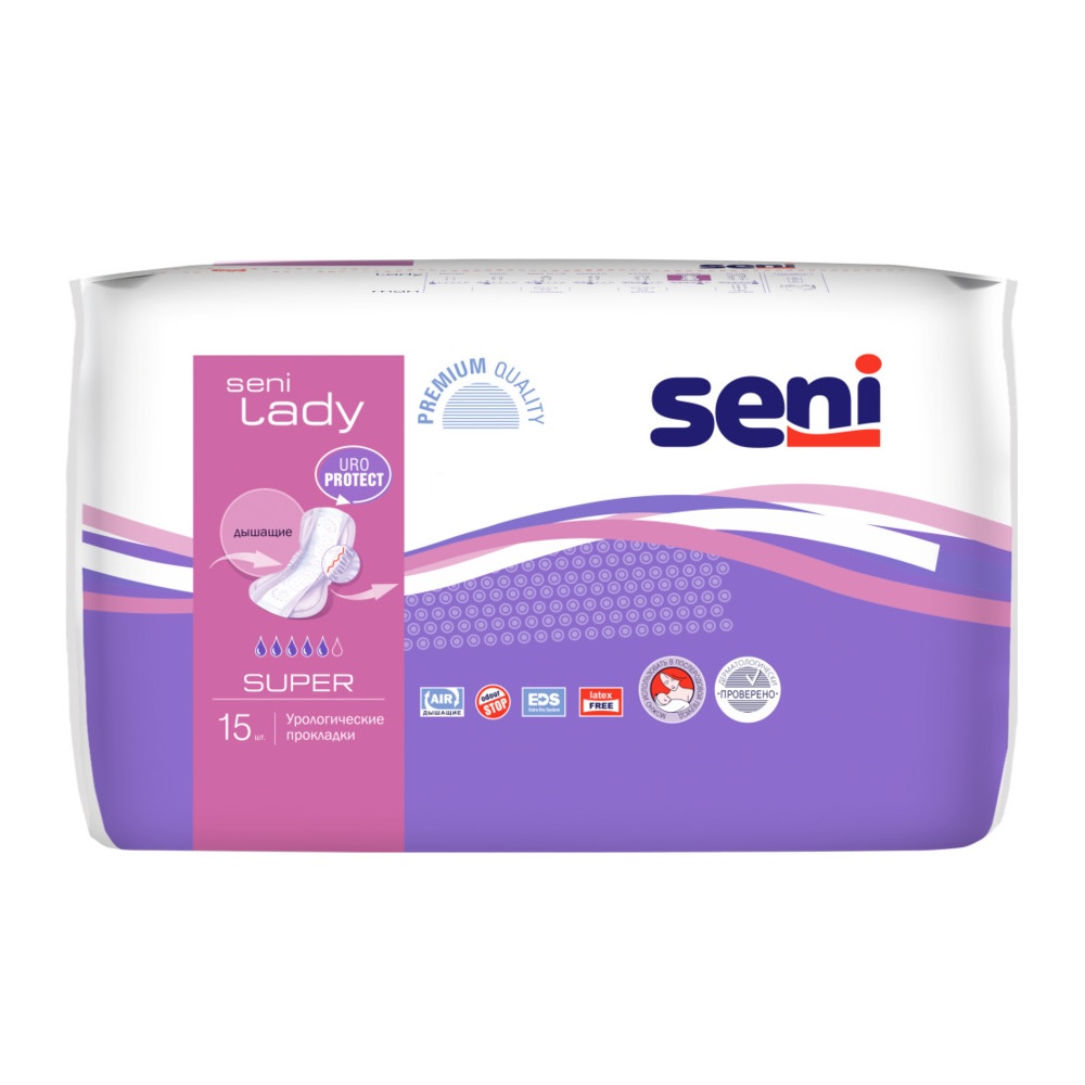 [description] => Seni Lady Super созданы специально для женщин, которые ценят удобство, комфорт и ведут активный образ жизни. Дышащие» урологические прокладки Seni Lady Super обеспечивают надежную защиту и незаметны под одеждой. Рекомендуются при капельной и легкой степенях НМ.