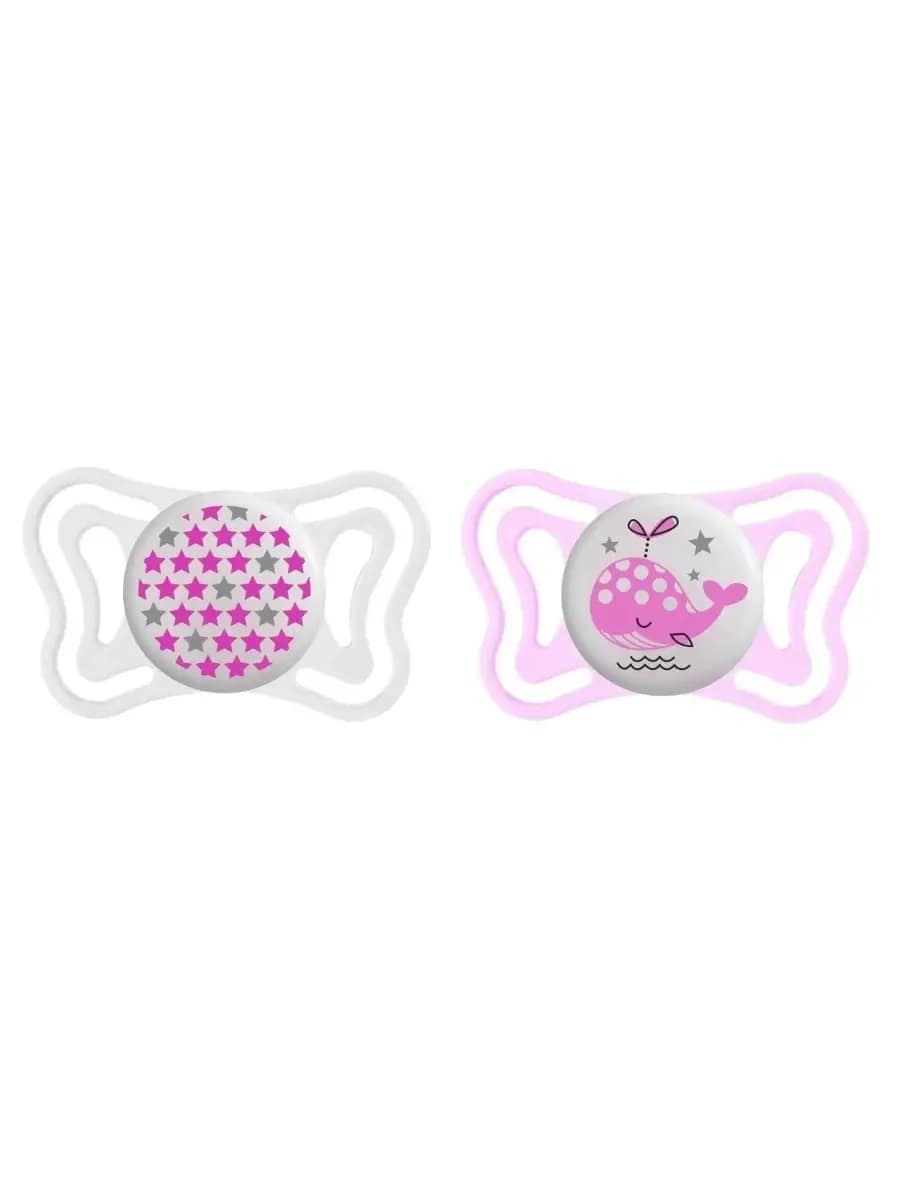Пустышка силиконовая люминисцентная розовая 2-6мес Chicco PhysioForma 2 шт