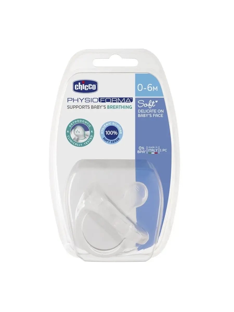Пустышка силиконовая прозрачная 0-6мес Chicco Physio Soft 1 шт