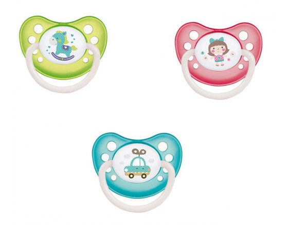 Основание пустышки имеет вентиляционные отверстия, что предотвращает раздражение кожи ребенка и не позволяет скапливаться слюне.