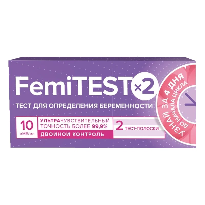 [name] => Тест для определения беременности Femitest ультачувствительный тест-полоска 2шт 10мМЕ/мл FemiTEST 1 шт