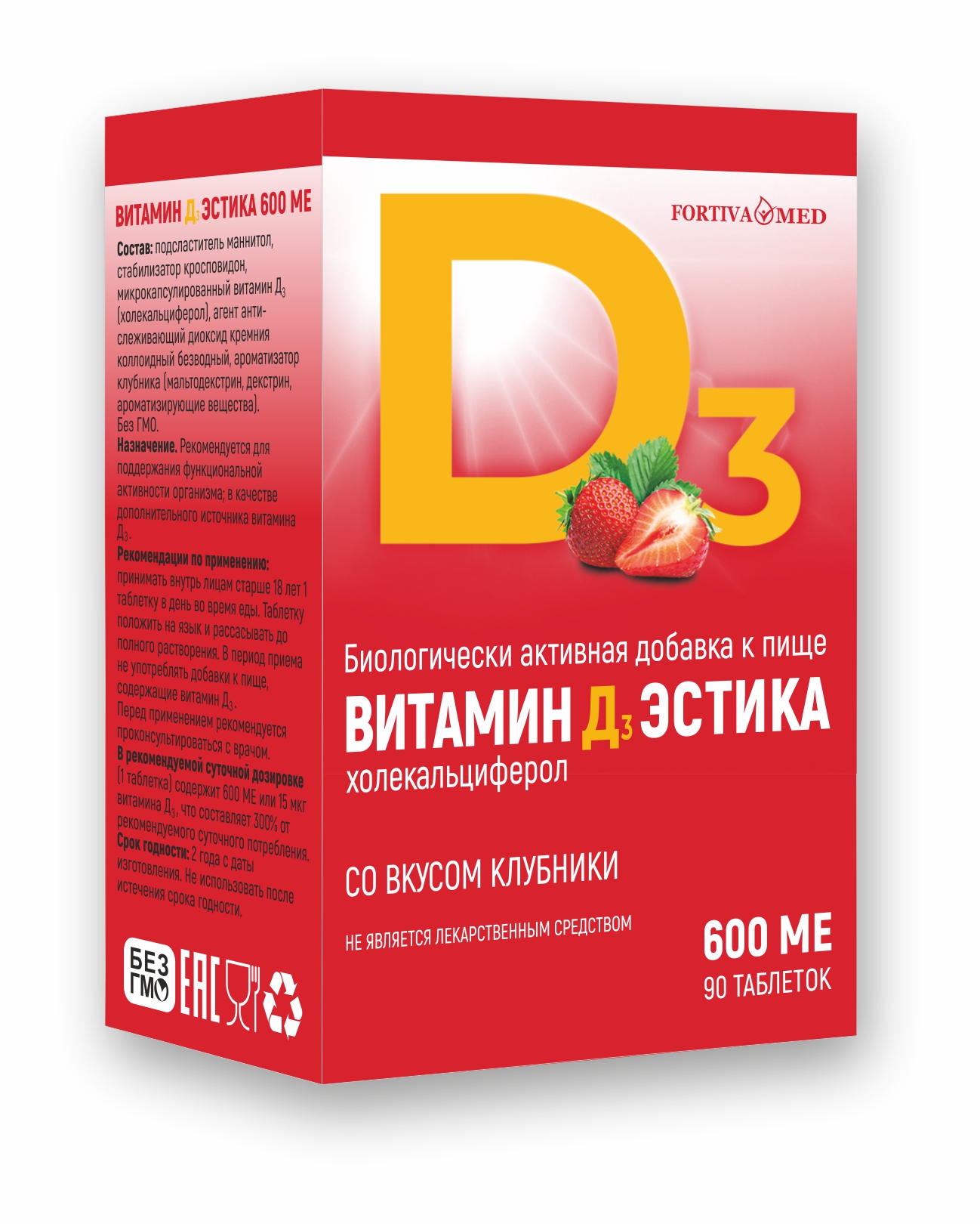 Витамин Д3 Эстика 600МЕ таблетки диспергируемые 200мг N90 со вкусом клубники
