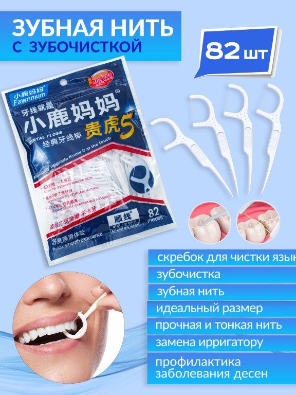 Зубная нить с зубочисткой 3в1 Fawnmum 82 шт