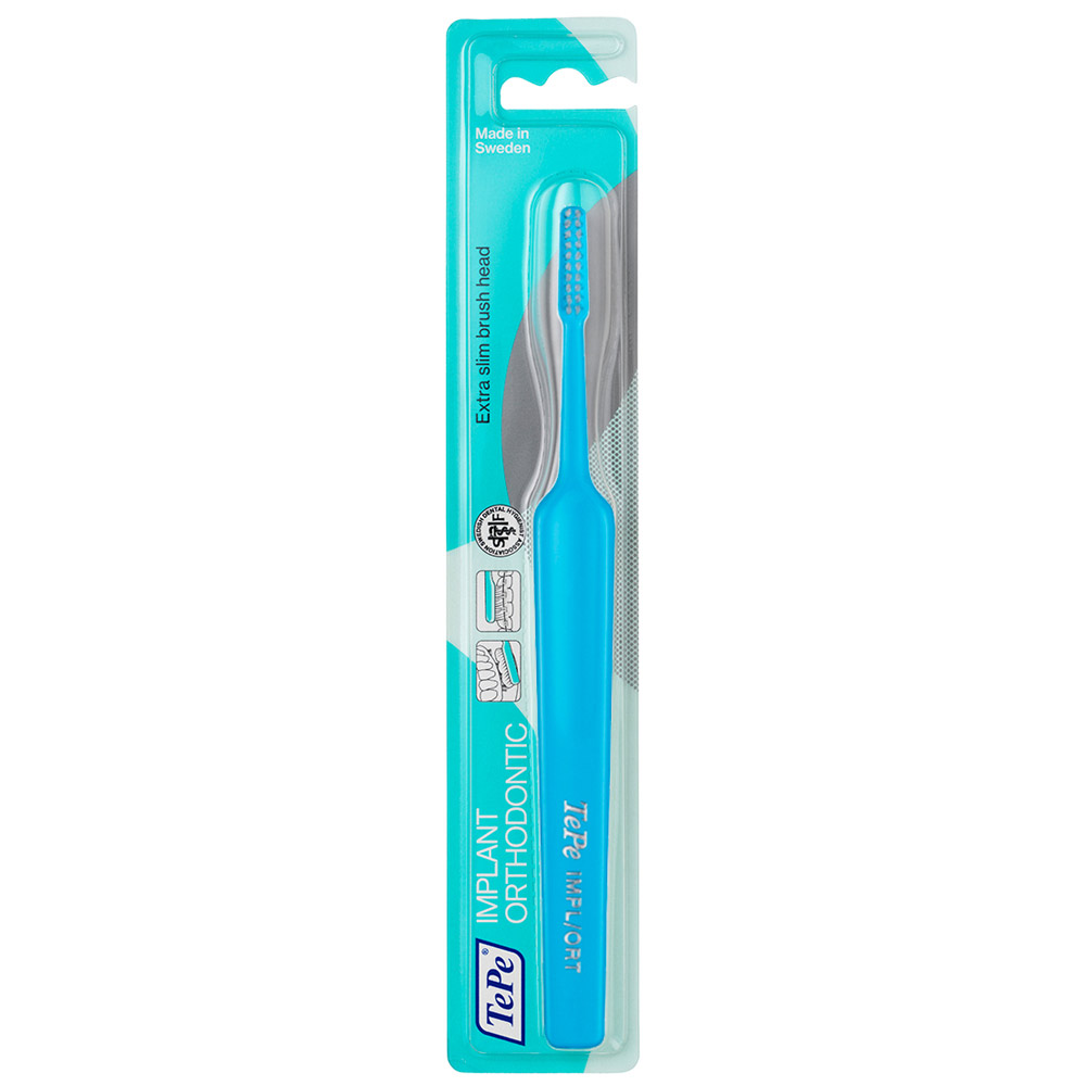 [description] => ЗУБНАЯ ЩЕТКА IMPLANT ORTHODONTIC, TEPE - шведского бренда TePe изготовлена для пациентов, вынужденных носить ортодонтические конструкции —брекет-системы и другие устройства, помогающие скорректировать прикус и избавиться от кривизны зубов. Эту щетку также используют пациенты с имплантатами. Щетка отличается достаточно узкой головкой и удлиненной шейкой: эти конструктивные особенности позволяю с легкостью обрабатывать даже дальние труднодоступные участки и добиваться наилучшего результата. Щетинки IMPLANT ORTHODONTIC расположены в два ряда, удлиненные — служат для очистки зубной поверхности от органических веществ, налета и скопившихся бактерий в местах, соприкасающихся с протезами, короткие — для обработки остальных зон.